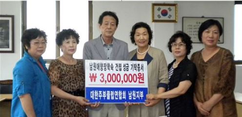 ´ëÇÑÁÖºÎŬ·´ ³²¿øÁöºÎ(ȸÀå ¹éûÀÚ)´Â ÀÎÀç¾ç¼ºÀÇ ¿ä¶÷ÀÌ µÉ ³²¿ø¾ÖÇâÀåÇм÷ °Ç¸³¿¡ ÇÊ¿äÇÑ ±â±ÝÀ¸·Î 3000¸¸ ¿øÀ» 11ÀÏ ³²¿ø¾ÖÇâ¿îµ¿º»ºÎ¿¡ ±âŹÇß´Ù.